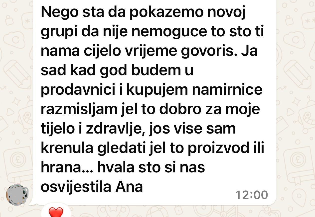 Nisi sama između Zoomova. Imaš prostor da pitaš, da podijeliš, da ustaneš kad padneš – uz mene i zatvorenu whatsapp grupu koja te prati.